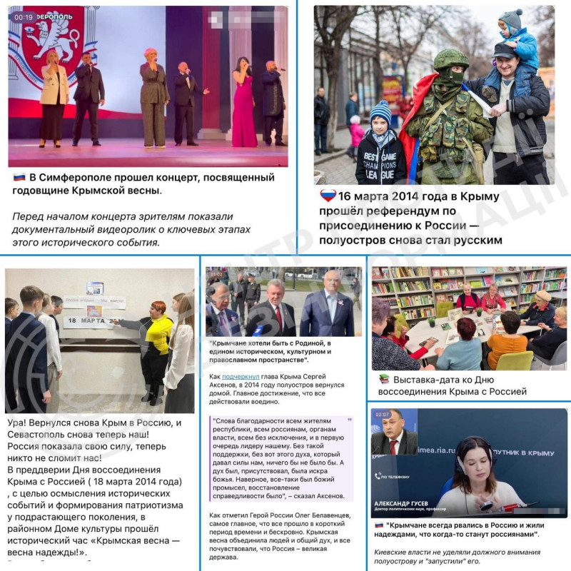 «Усі ці заходи мають на меті не „святкування“, а закріплення у свідомості, особливо молоді, ілюзії „історичної справедливості“. Кремлівські ресурси просувають наратив про „добровільне возз’єднання“, ігноруючи факт військової присутності та примусу під час подій 2014 року», — кажуть експерти Центру.