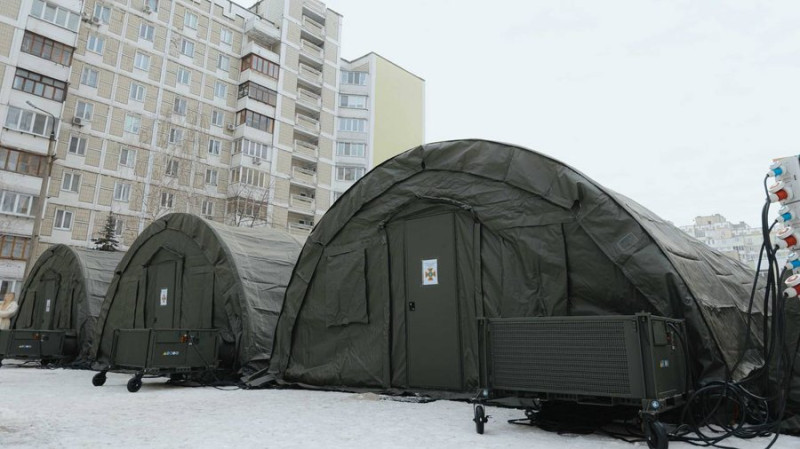 Наметове містечко для обігріву людей, які розгорнула ДСНС на Троєщині. ДСНС Києва/Telegram