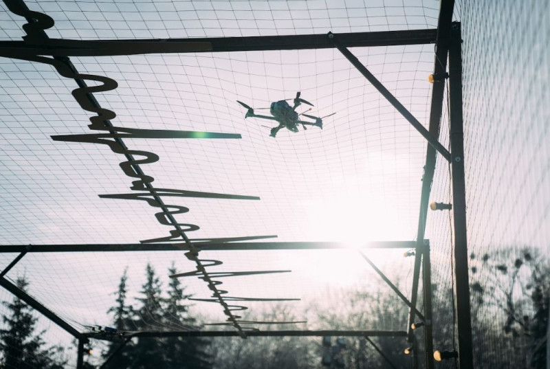 «Нині більшість шляхів до фронту саме такі — із сітками, які захищають транспорт і військових від ворожих дронів. Вони стали дорогами життя та артеріями фронту — саме тому на цій сітці зображена кардіограма», — пояснили автори проєкту.