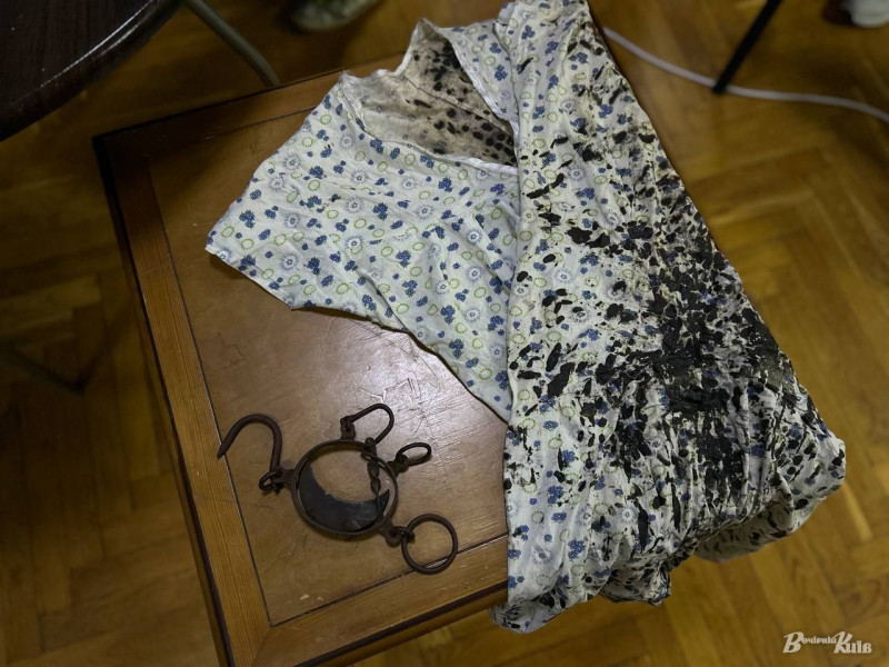 Автентичні ваги з музею, та сорочка, в якій рятувалася під час облоги 92-річна мати В’ячеслава. Фото: Олександра Плакіна