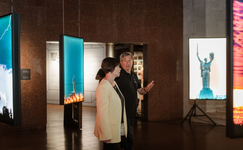 Для Дениса Семенця «Батьківщина-мати» вже багато років є центральним образом творчості. Він зізнався, що для нього велика честь представити свої роботи саме у стінах музею, розташованого під самим монументом. Фотограф також зазначив, що особливо пишається тим, що йому пощастило зафіксувати пам’ятник у моменти його історичних змін, а Вадим Блонський переосмислив його графічно, створивши образи, які стали популярними в цифровому просторі.