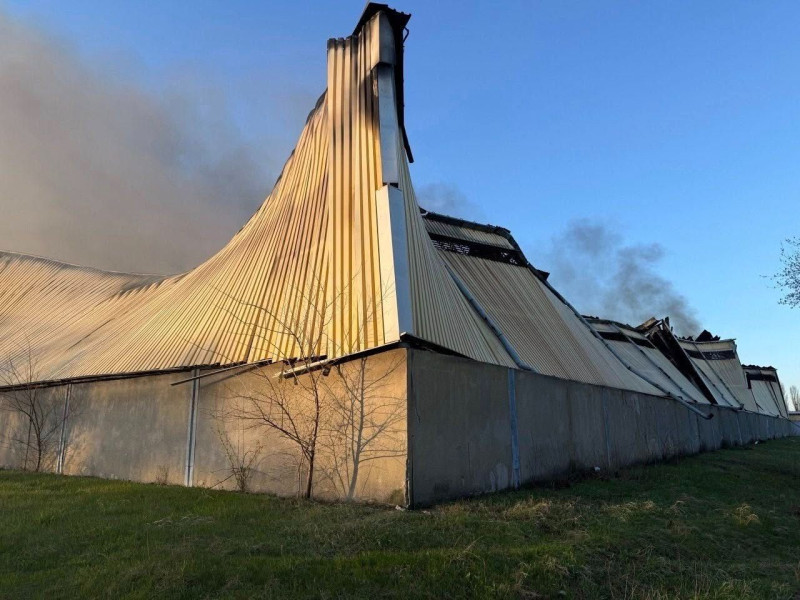 В результаті прямого влучання спалахнула масштабна пожежа, яку вже загасили рятувальники. Склад отримав серйозні пошкодження.