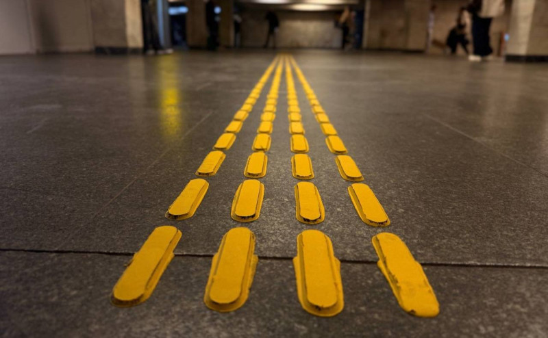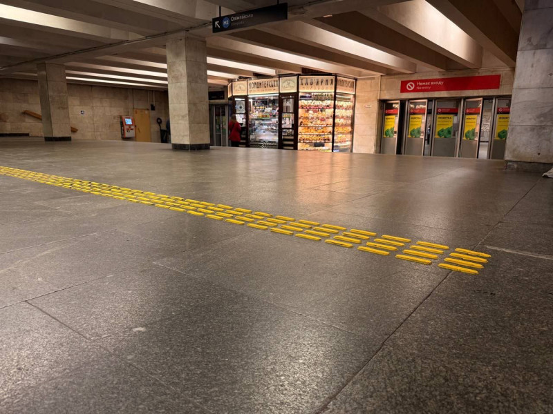 Тактильні смуги на станції «Олімпійська». Фото: пресслужба КМДА