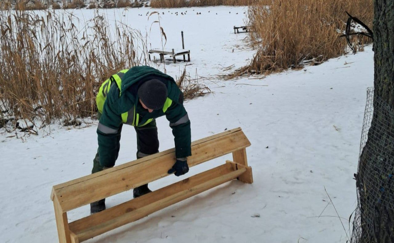 Годівнички, наповнені зерном, з’явилися у парку «Позняки» та фітнес-парку «Озеро Лебедине».