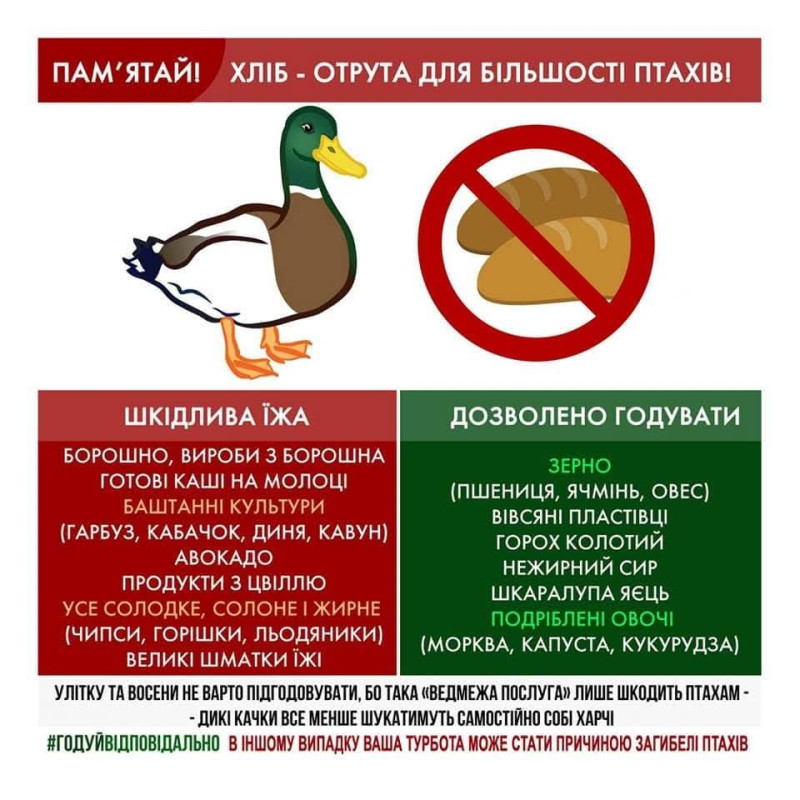Киян закликають не годувати птахів хлібом. Фото: КП УЗН Дарницького району