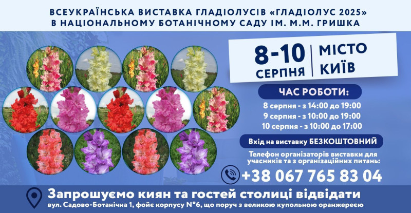 З 8 по 10 серпня в Національному ботанічному саду імені М.М. Гришка НАН України відбудеться традиційна Всеукраїнська виставка гладіолусів «Гладіолус 2025».