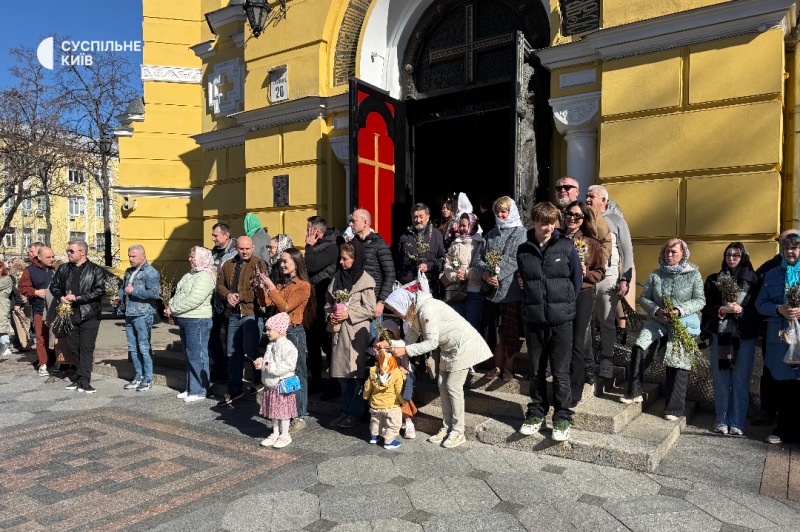 Віряни вишукувались біля Володимирського собору і чекають освячення вербових гілочок. Суспільне Новини/Станіслав Свирид"Сьогодні дуже велике свято і хотілось би всіх поздоровити. Господь до нас прийде обов'язково і обов'язково принесе мир. Зараз йде війна. Але Господь нас зберігає, нашу країну і посилає нам благодать, і дає нам сили, розуміння, щоб ми продовжували боротися за свою країну і Господь нам дуже допомагає в цьому. Буде мир, щастя в кожній сім'ї. І цього я всім бажаю, і щоб це було дуже скоро", — сказала вірянка Людмила.