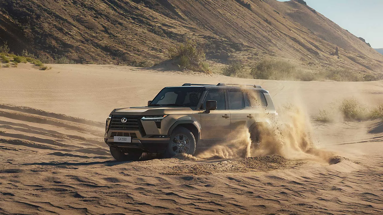Зноска: GX 550 — це поєднання класичного силуету рамного позашляховика з ультрасучасними технологіями. Він має нову підвіску, адаптивну систему повного приводу, інноваційну мультимедійну систему Lexus Interface з 14-дюймовим дисплеєм, і широкий набір систем безпеки Lexus Safety System+ нового покоління.
