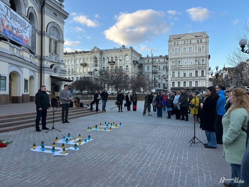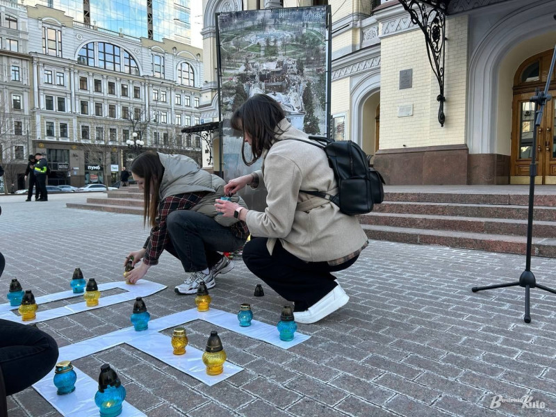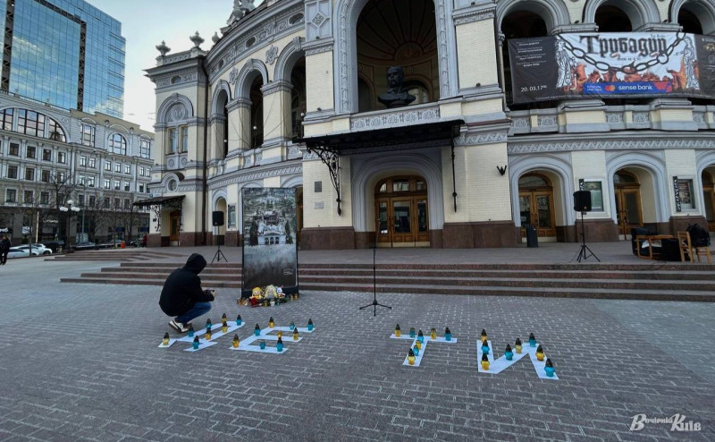 16 березня у Києві поблизу Національної опери України імені Тараса Шевченка відбулася акція вшанування пам’яті загиблих під час авіаудару по Маріупольському драматичному театру.