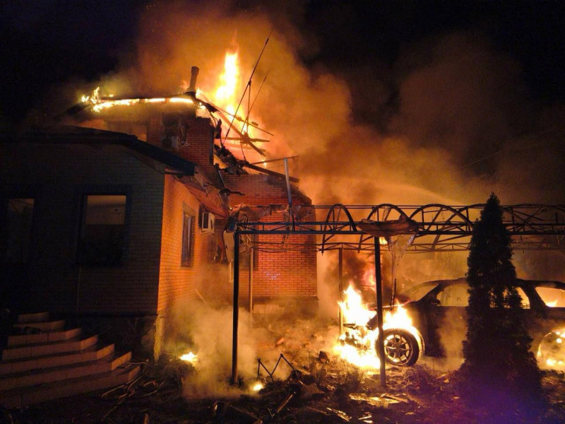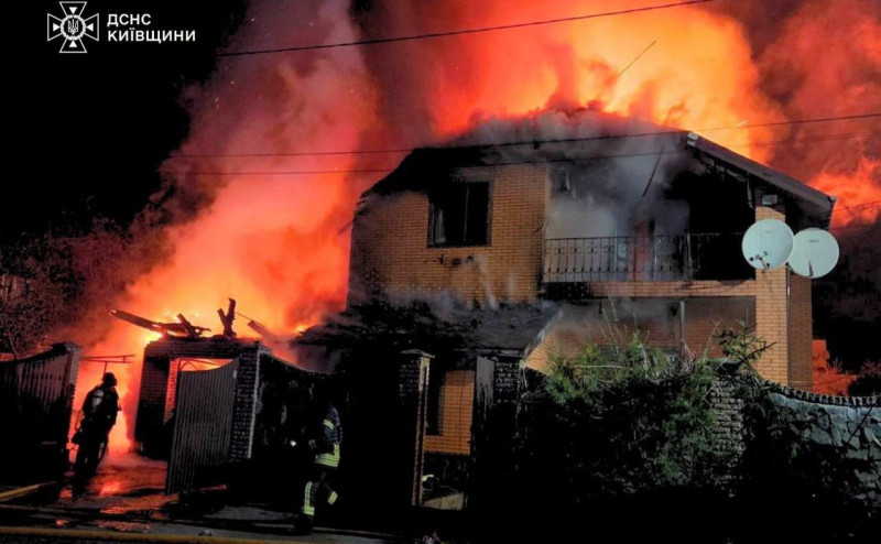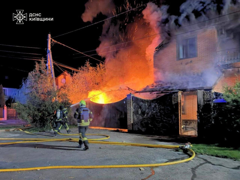 У Броварах дрон влучив у подвір’я приватного домоволодіння. Внаслідок удару у будинку виникла пожежа, яку загасили рятувальники.