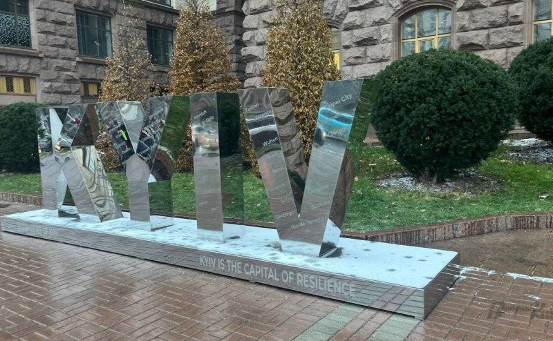 Слово «KYIV» біля столично мерії. Фото: Марія Бєляєва