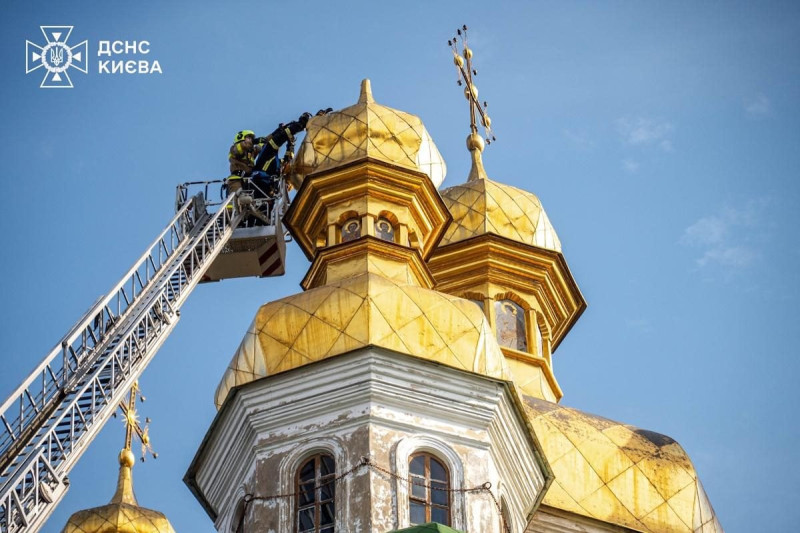“8 березня о 13:05 надійшло повідомлення про необхідність допомоги у провулку Лаврському. Прибувши на місце, рятувальники встановили, що на куполі одного з храмів частково завалився хрест”, – йдеться у повідомленні.