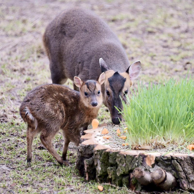 “Його зламана щелепа зрослась, і він вже хрумко смакує молоду травичку та зелені гілочки. Ба більше – у пари Мо та його “дружини” Мілу з’явилось новонароджене мунтженятко Сімейство тішиться першими весняними променями сонечка у своєму природному вольєрі. Їх вже можна побачити щодня – на копитному ряді зоопарку біля павільйону “Пустеля”, – йдеться у повідомленні.