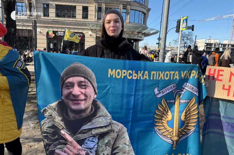 Брат Наталії зник безвісти у грудні 2024 року. Жінка регулярно ходить на акції підтримки. Київ, 1 березня 2026 року. Суспільне Новини/Дар’я Григоренко