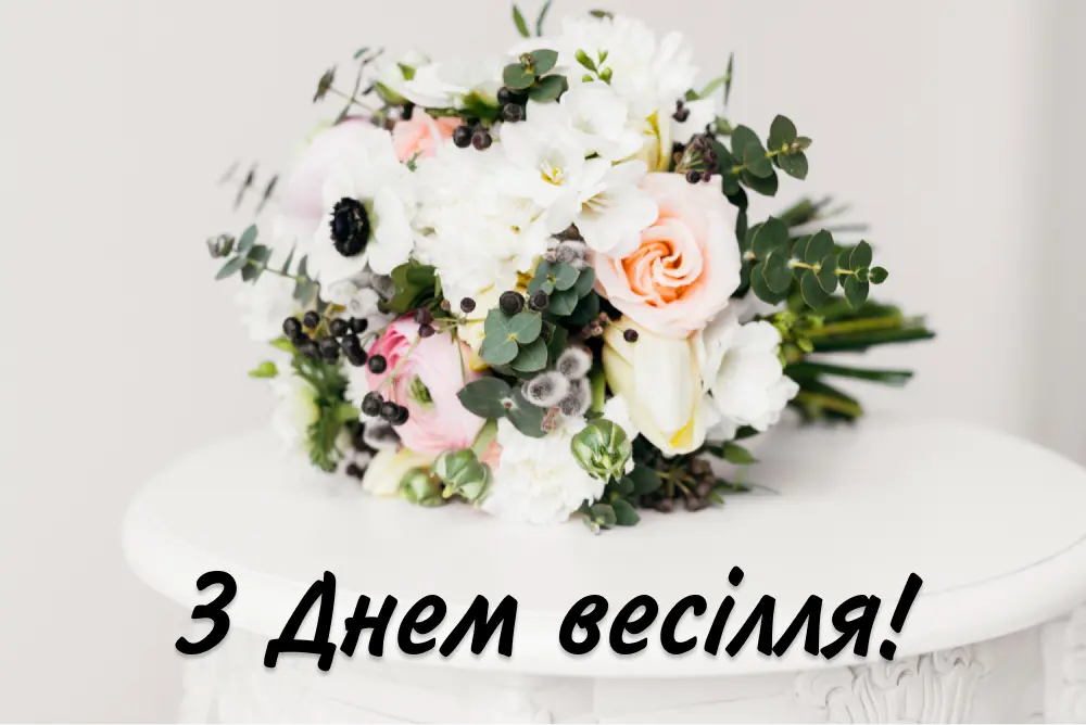 💖 Нехай ваше подружнє життя буде сповнене взаємної любові, підтримки і гармонії. Бережіть одне одного, даруйте тепло і завжди залишайтеся щасливими! Вітаю з весіллям! 💍🎉