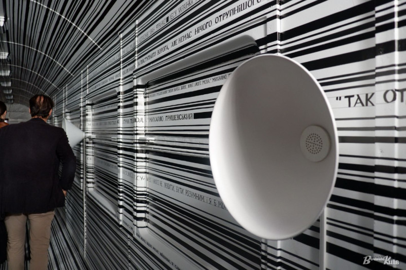 А далі на відвідувачів чекає пшеничне поле під небом, ставок з лататтям, Чайтку- 20-метровий козацький човен і сучасна гроза ворогів на Чорному морі — дрон Магура (правда на екрані), шабля Мазепи та меч часів Київської Русі, копія золотої пекторалі, VR-досвіди, аби політати над Карпатами та Сивашем, стародруки зі згадками України, великі «вау» часів незалежності — від статуеток «Євробачення», «Оскара» до «Золотого мʼяча». А також відновлену мозаїку «Боривітер». Експозицію про мешканців будинку «Слово» і шістдесятників. До речі, можна «подзвонити» у квартири Хвильовому, Сосюрі, Тичині чи Остапу Вишні і вислухати їхню відповідь.