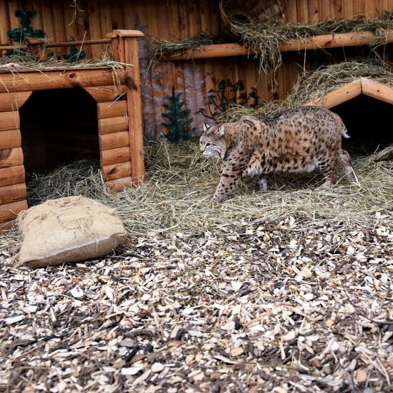 Рись прогулюється на своїй території у зоопарку / фото Київський зоопарк