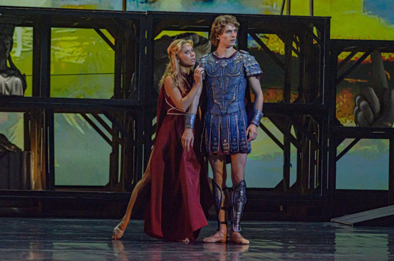 За основу сюжету взята найзагадковіша поема Лесі Українки, що змалювала протистояння між добром та злом через призму видінь доньки троянського царя Кассандри. Ця прекрасна дівчина бачила істину та намагалась донести її людям, аби спрямувати їх на вірний шлях, проте їй ніхто не вірив, адже важко чути абсолютну правду від тендітного пророка. Ролі виконують: Анастасія Шевченко (Єлена), Даниїл Пащук (Паріс), Клеман Гійом (Долон), Ліна Володіна (Кассандра), Микита Кайгородов (Гектор), Еліна Бідна (Андромаха), Каріна Тельвар (Поліксена), Тімоті Харфорд (Сінон). - «Мойсей» на музику Тимофія Старєнкова. Балет «Мойсей», створений за мотивами поеми Івана Франка — про прагнення нації зберегти свою землю, пошук «маленького раю» та віру у Перемогу. «Літературне джерело сюжету — пророче і неймовірно актуальне саме зараз, — ділиться роздумами постановниця балету Олеся Шляхтич, — адже розповідає про людей, що борються за своє місце на землі. Вони втомились, опинившись на межі зневіри. Але пророк Мойсей, а з ним і сам Бог, вказує шлях, не дає здатись». Україна змушена вести кровопролитну війну. Ця вистава є закликом до стійкості та надії на світле майбутнє. Сценографічне рішення для вийстави «Мойсей» — це символічне відтворення гори. Сходження Пророка — це приклад невичерпної віри у процвітання народу та «омріяного раю», який відкривається розгорнутою перспективою краєвиду України після Перемоги. Хореографія та музичне оформлення є сучасними, динамічними та живими і гарантують глибоке занурення у сюжетну лінію вистави та насолоду від майстерності виконання партій.
