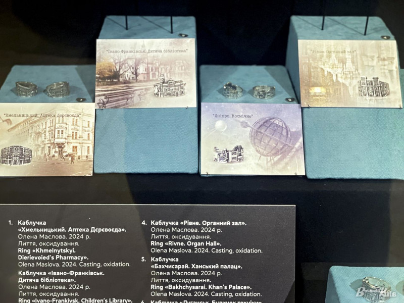 Простір світу переносить у різні куточки планети, але кожна прикраса має українське коріння. Центральними тут є каблучки з архітектурними образами обласних центрів, ханським палацом у Бахчисараї та підвісок із Маріупольською вежею — вони відкривають символічну мандрівку Україною, поєднуючи простори й серця.