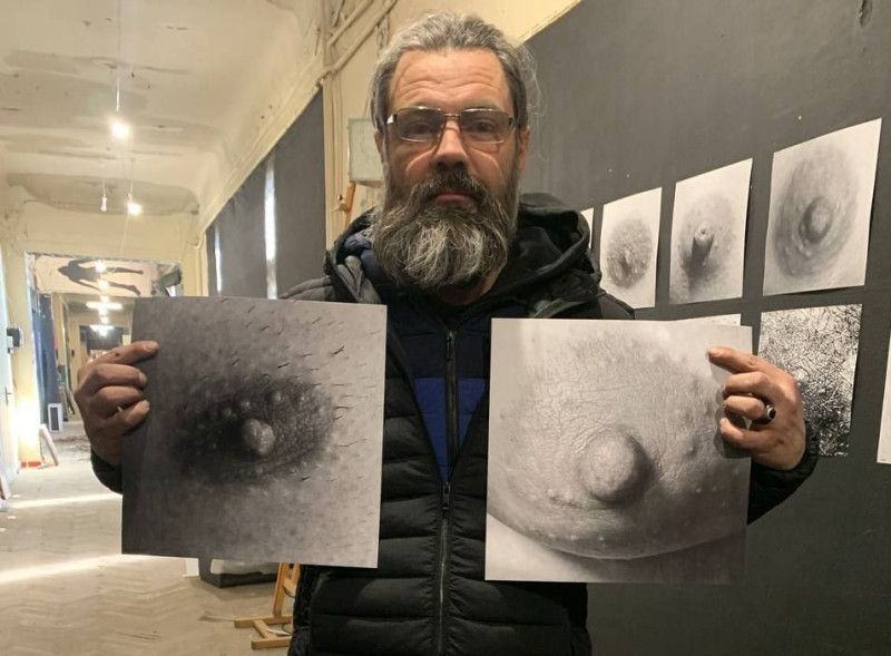 «Інстаграм нас блокує за сосок. Сосок — це що? Якийсь такий тригер? Й ми починаємо про це замислюватися. Досліджуємо сосок як еротику. Та яка це еротика? У мене на стіні зараз висять фотографії 70 сосків. Буде ще більше. Тут не зрозумієш відразу, де жіноча, де чоловіча натура. Щобільше, якщо говорити словами мистецької уяви — ця частина тіла схожа на галактику, наш всесвіт. Ми все наше життя гортаємося навколо цих символів життя. Тоді у чому сенс заборони?» — розмірковує Євген.