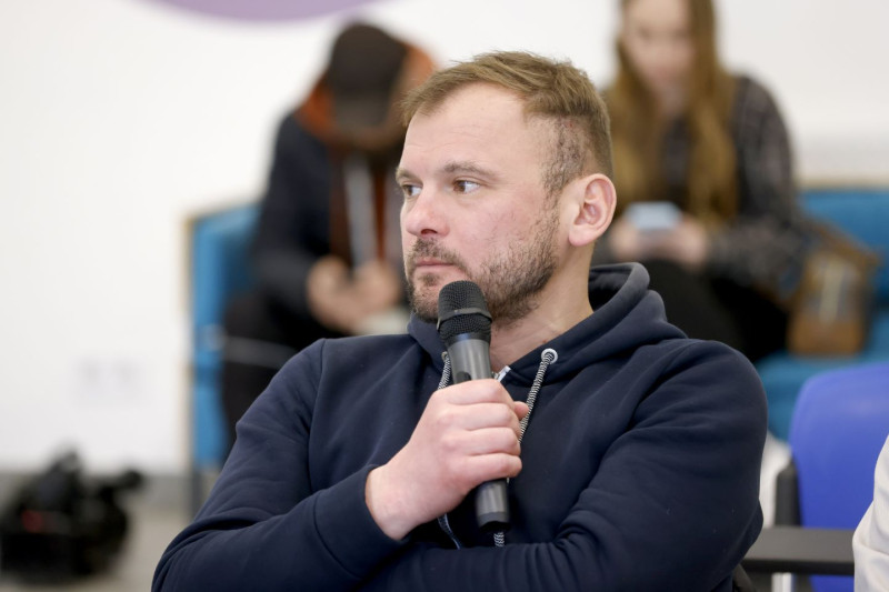Режисер Максим Тузов розповідає про свою стрічку. Фото: Борис Корпусенко