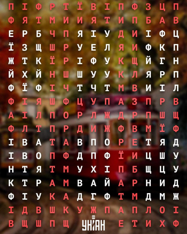 У новій головоломці від УНІАН вам потрібно відшукати на зображенні слово “трамвай”. Впоратися необхідно всього за 11 секунд. У цьому завданні слово можна шукати по горизонталі чи по вертикалі, але не по діагоналі.