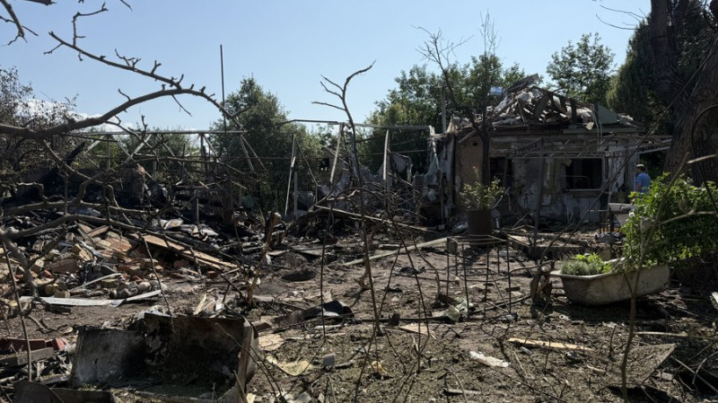 Місце удару російського безпілотника у подвір’я домогосподарства у Бучі. 8 серпня 2025 року. Суспільне Новини/Анна Железняк