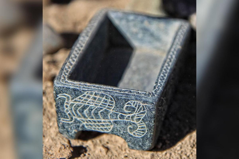 За його словами, одним із найцікавіших предметів поховання був виготовлений вручну прямокутний ящик із чорного каменю, багатого мінералами “хлорит”, прикрашений різьбленими зображеннями змій і скорпіонів.