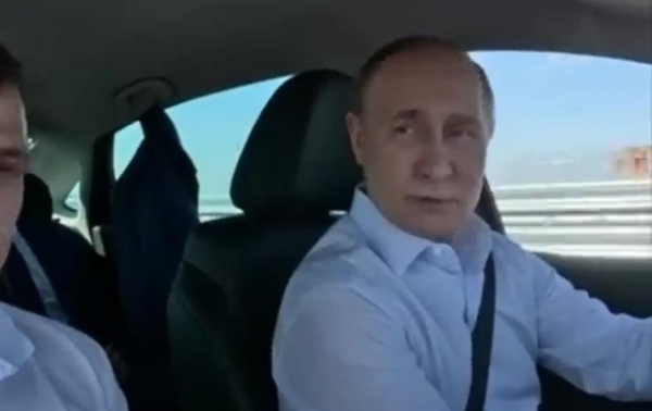 Фото: Скриншот “рекламного” відео Хазяїн Кремля особисто сів у машину в липні 2024 року, відкриваючи нову трасу в обхід Твері