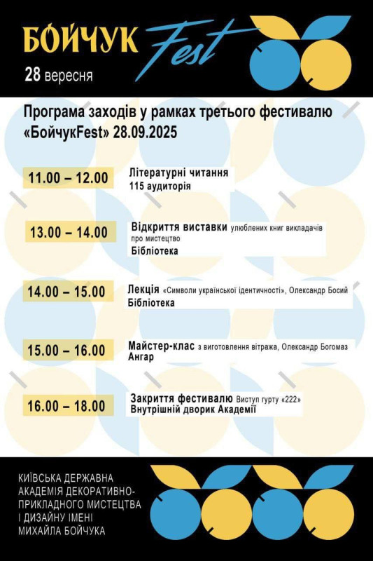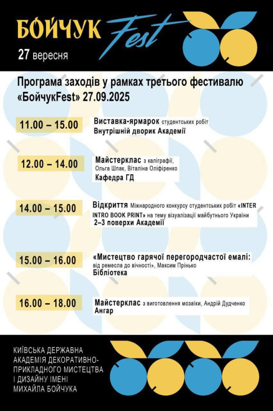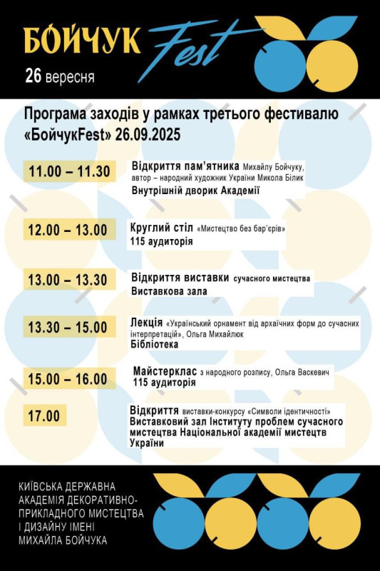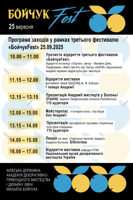 З 25 по 28 вересня 2025 року в Київській державній академії декоративно-прикладного мистецтва і дизайну імені Михайла Бойчука відбудеться третій культурно-мистецький захід «БойчукFest».