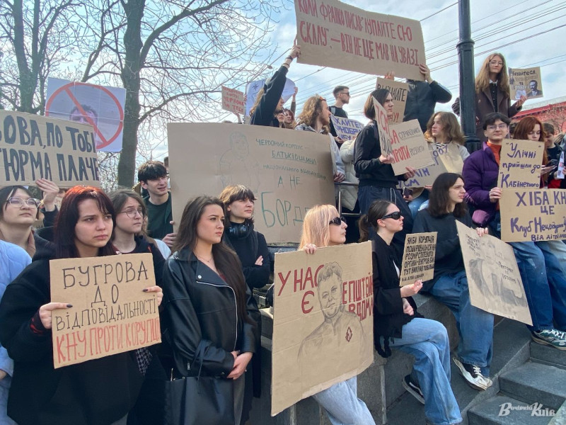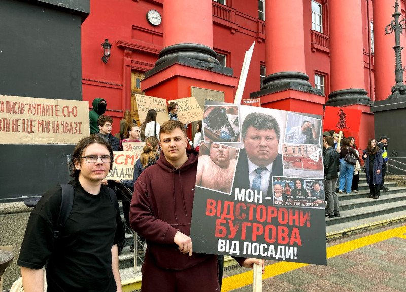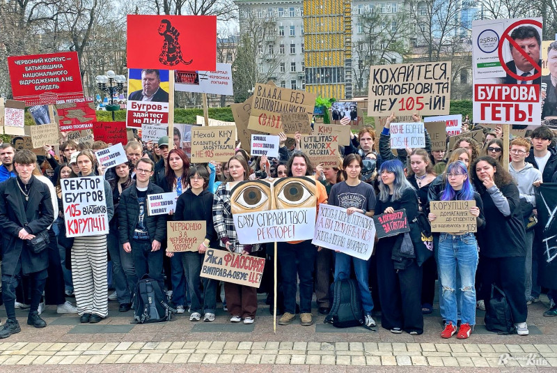 1 квітня студенти вийшли на акцію в Києві під Київським національним університетом імені Т. Шевченка проти чинного ректора Володимира Бугрова.