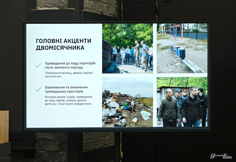 Як зазначив директор Департаменту територіального контролю міста Києва Михайло Буділов, за планом заходів весняного двомісячника з благоустрою завдання поставлені всім комунальним службам. Зокрема максимальні зусилля — на прибирання стихійних сміттєзвалищ, яких інспектори з благоустрою наразі нараховують близько 30. Він також просить киян повідомляти про місця скупчення непотребу через Фейсбук-сторінку Департаменту та кол-центр 15-51.