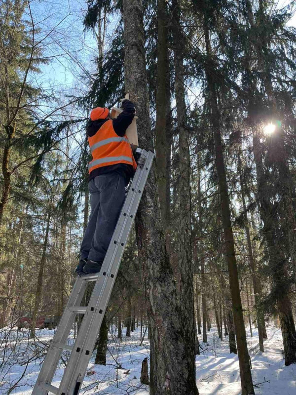 Прзвішування шпаківень. Фото: КО «Київзеленбуд»