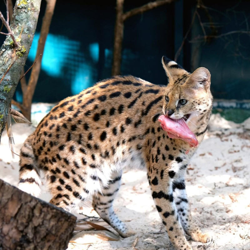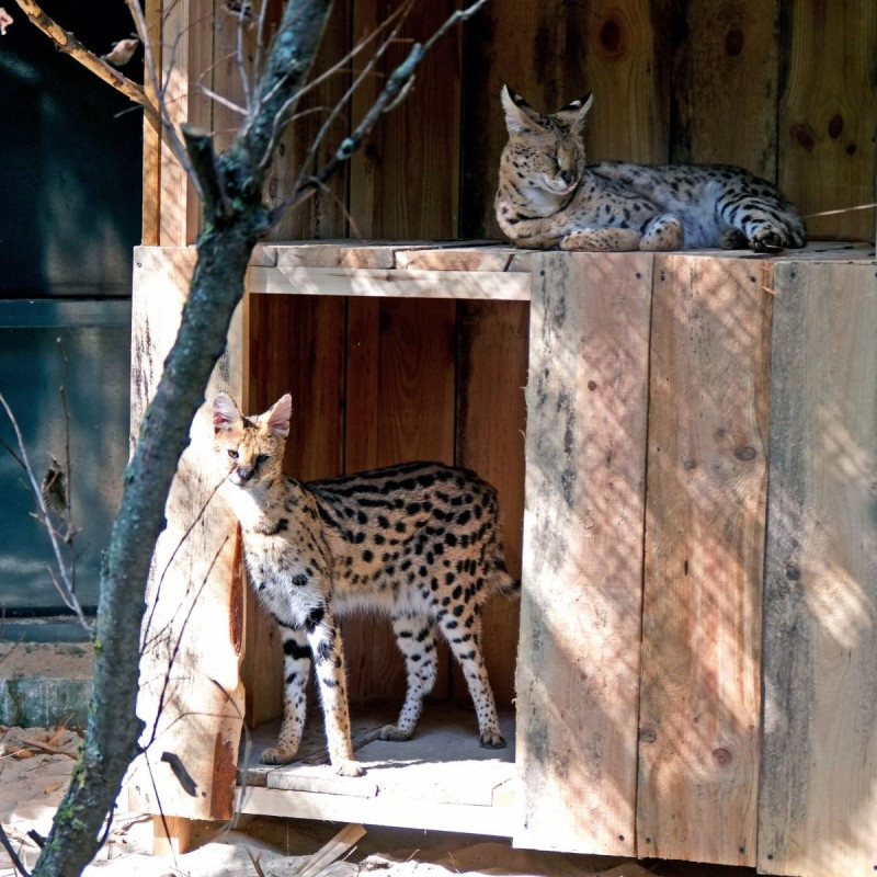 Побачити цих диких африканських котів, які ззовні чимось нагадують гепардів, можна у фруктовому саду КиївЗоо.