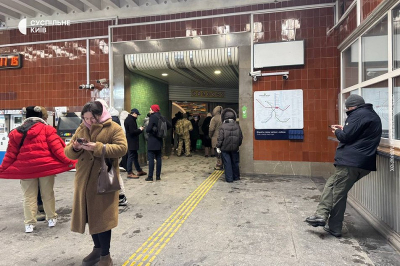 Вхід до станції метро “Майдан Незалежності”, коли метрополітен тимчасово припинив роботу через аварійні відключення електроенергії, 31 січня 2026 року. Суспільне Новини/Дар’я Нематіан Золбін