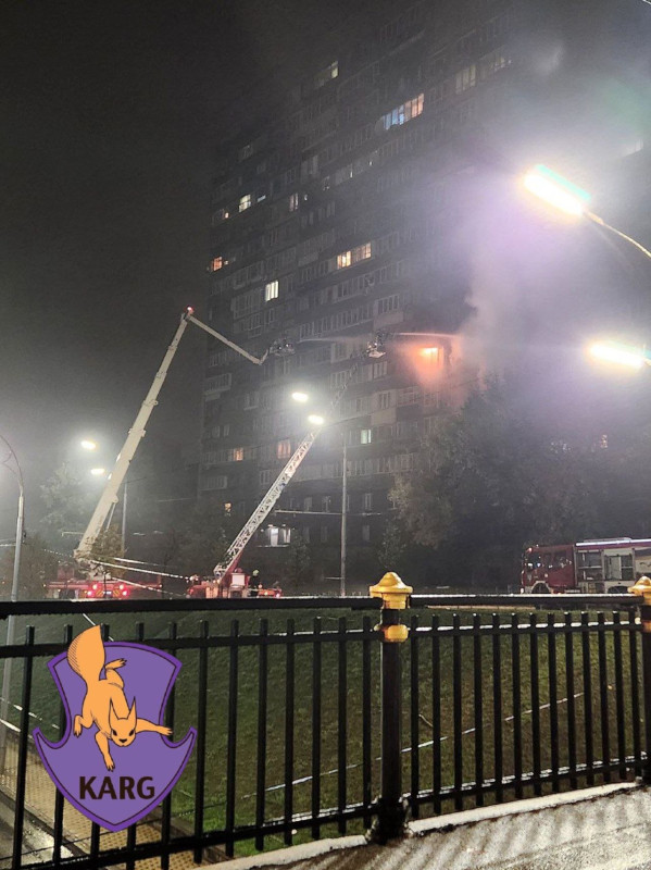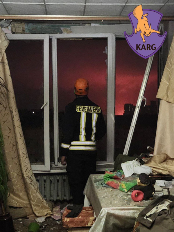 Внаслідок влучання в житловий будинок у Печерському районі спалахнула пожежа. Фото: Команда порятунку тварин